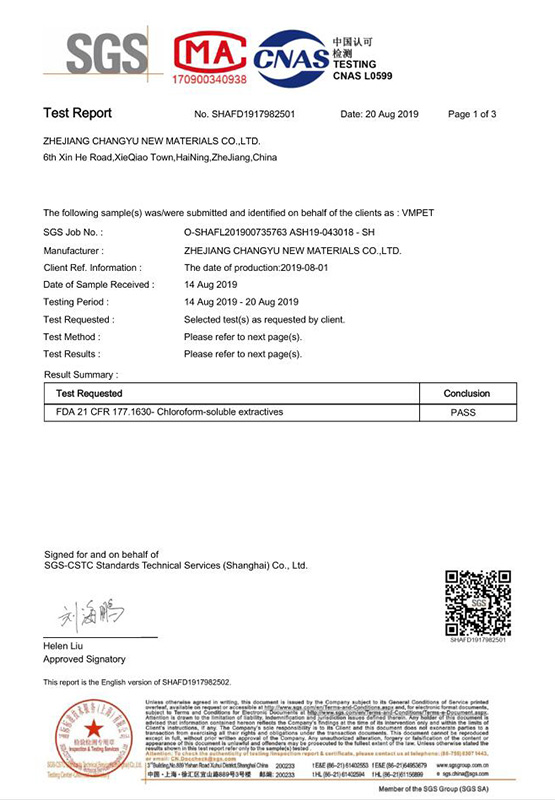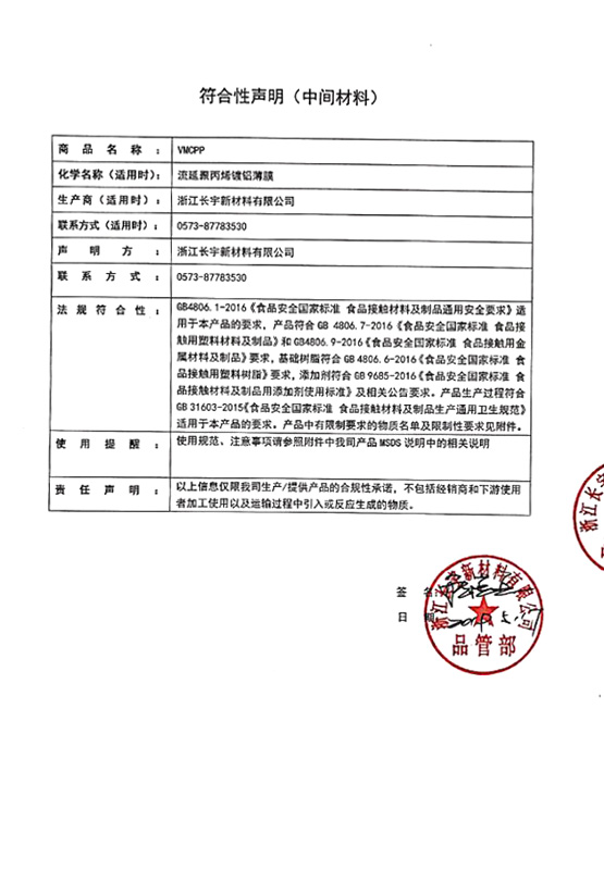 Changyu, Çin pazarında "Ambalaj için Şeffaf Alüminyum Oksit Filmi" nin öncüsü ve savunucusudur, bu ürünün geliştirilmesi ve tanıtımı için aralıksız çabalarda bulunduk, Changyu aynı zamanda devam eden büyük ulusal standart proje "oksitlerin kalite genel kuralları, gıda ambalajı için gıda ambalajı için pouches" in kalite kurallarıdır.