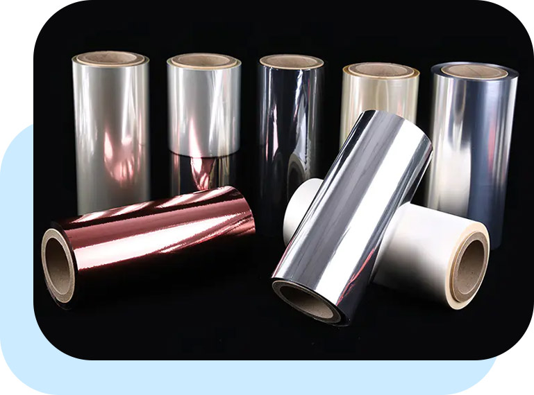 8 Kapsamlı ürünlerÇeşitli metalize film (VMPET/VMCPP/VMBOPP), Kaplama Filmi (PVDC/Akrilik/PVA), alox caoted film (laminasyon/baskı için ALOX PET), yeni ve üst düzey ürünlerin sürekli yeniliği. .